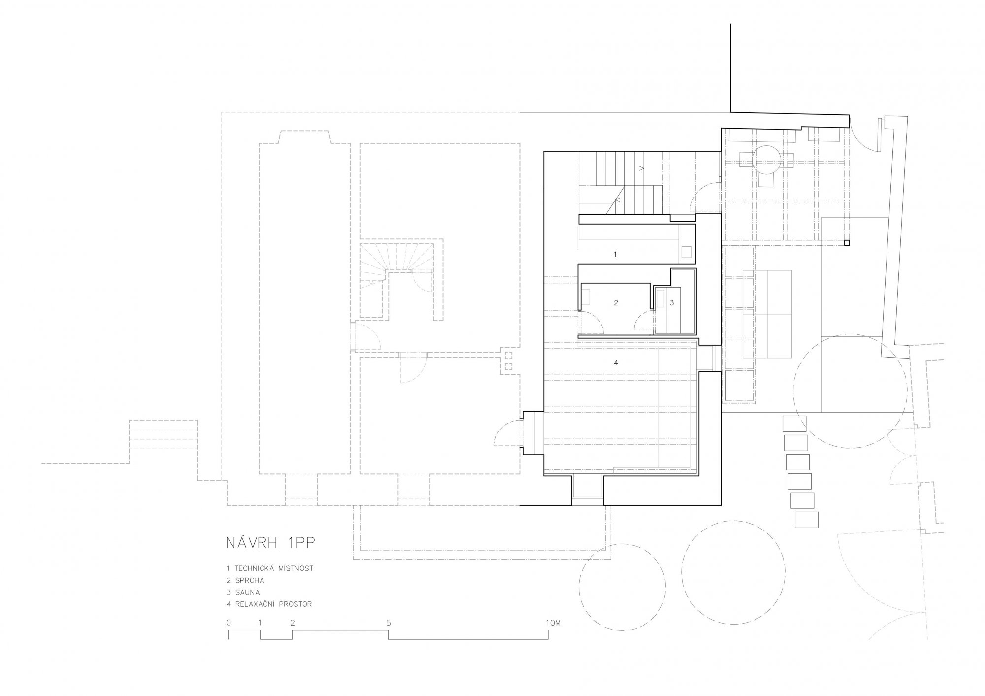 V objektu bývalého mlýna, jehož západní část slouží k trvalému bydlení již od devadesátých let, byly architektovi a jeho rodině nabídnuty východně orientované prostory. Nově vzniklá velkorysá bytová jednotka zachovává industriální charakter objektu a má výrazně vertikální členění s otevřenými prostory na každém patře, které jsou propojeny shora osvětleným schodištěm se zobytňujícími prvky. Hlavními novotvary východní fasády jsou velká okna a pobytová terasa s kovovým můstkem zakrývající vstupní část dvorečku s espritem sala terreny.