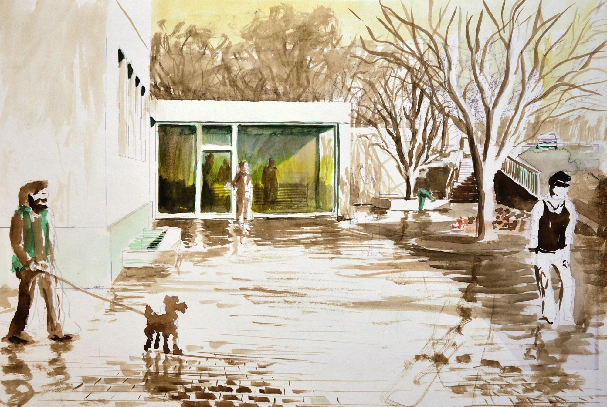 Přístavbu na "zbytkové" parcele zásobovacího dvora jsme těsně přimkli a vnitřně propojili se stávajícím blokem radnice ve slohu soc. realismu, tak aby se dala využít všechna možná provozní propojení - např. využít zázemí stávající restaurace ve staré budově k provozu kavárničky v nové části, která může sloužit jak návštěvníkům komorního kulturního sálu, tak pacientům procházejícím do ordinací lékařů, které jsou přístupné variantně i přímo z venku. Vnější vzhled přístavby má pak podtrhnout městský esprit, zdůraznit vstřícnost a otevřenost a důstojně zkompletovat celý komplex budov.