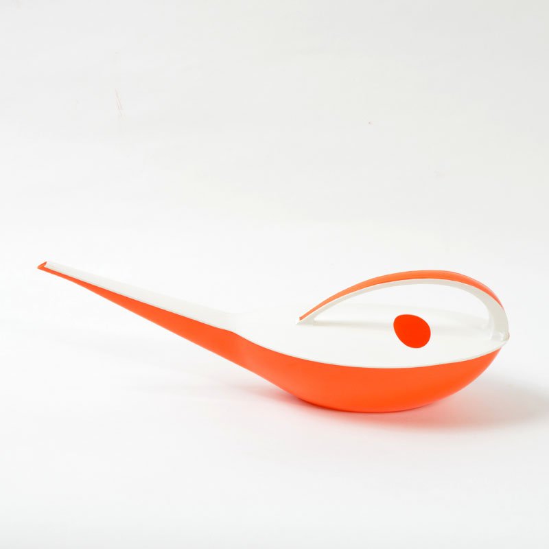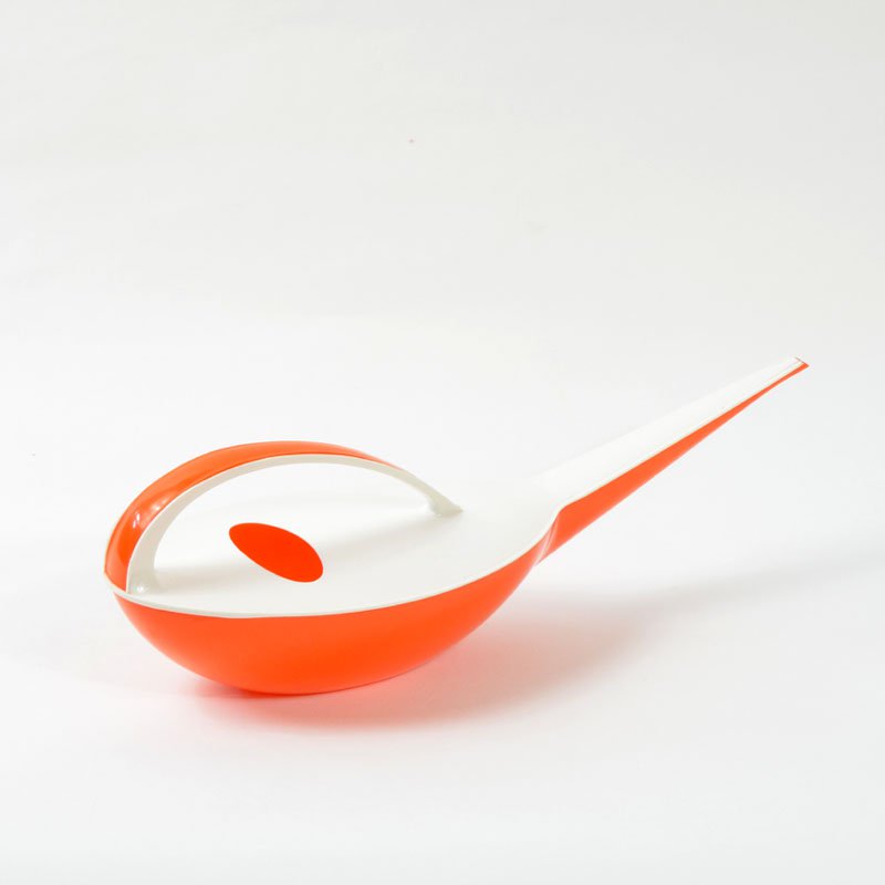 Plastová konvička na zalévání květin v kombinací bílé a oranžové. Elegantní tvar, původní stav bez jakéhokoliv poškození. Československo 60. léta.