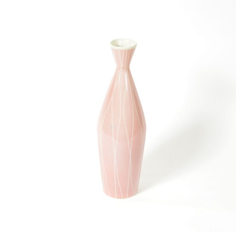 Keramická, světle růžová, váza s decentním dekorem. Bez jakéhokoliv poškození, značena na dně, značka nečitelná. Československo 60. léta.