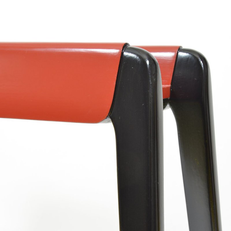 Dřevěný art deco květinový stolek. Po kompletní renovaci a novém nátěru v černé a hnědočervené kombinaci. Československo 20. léta.