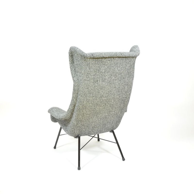 Designérsky velmi ceněné, kompletně zrenovované křeslo typu ušák od českého designéra Miroslava Navrátila (spolu s Magda Sépová). Křeslo je subtilní konstrukce, přesto se v něm pohodlně sedí. Skolaminátová kostra je očalouněna a "sedí" na kovové podnoži. Všechny části včetně vnitřků čalounění jsou zrenovovány. Československo 60. léta.